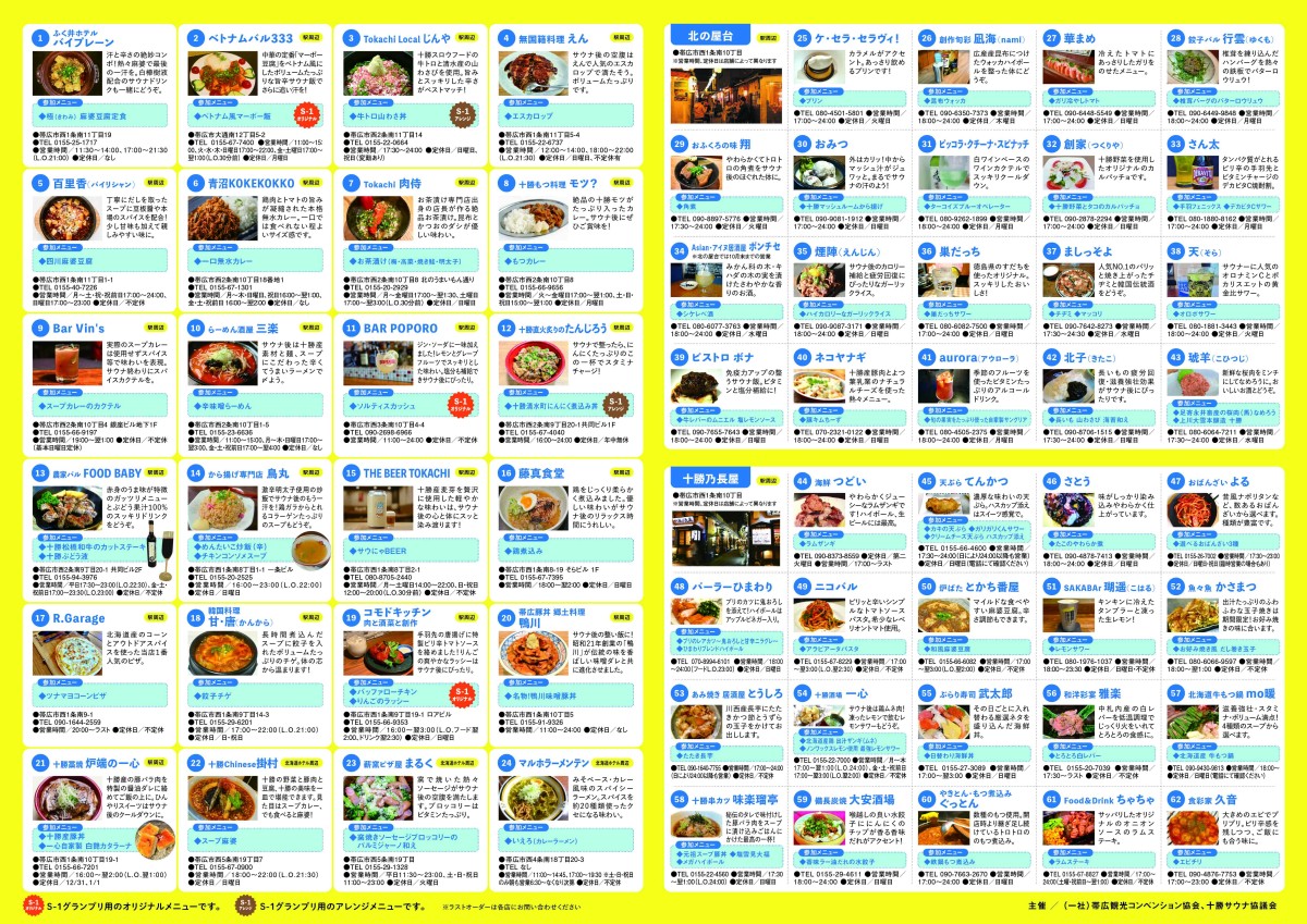大好評だった第1回に続き、今年も10/1(水)~11/30(日)に「TOKACHI S-1グランプリ」を開催いたします!さらに追い汗をかくスパイシーな料理、爽やかにクールダウンできるドリンクなど、さまざまなメニューで全62店がエントリー中です。サウナでととのった後は、ぜひ参加店のおすすめサウナ飯をご堪能ください!!