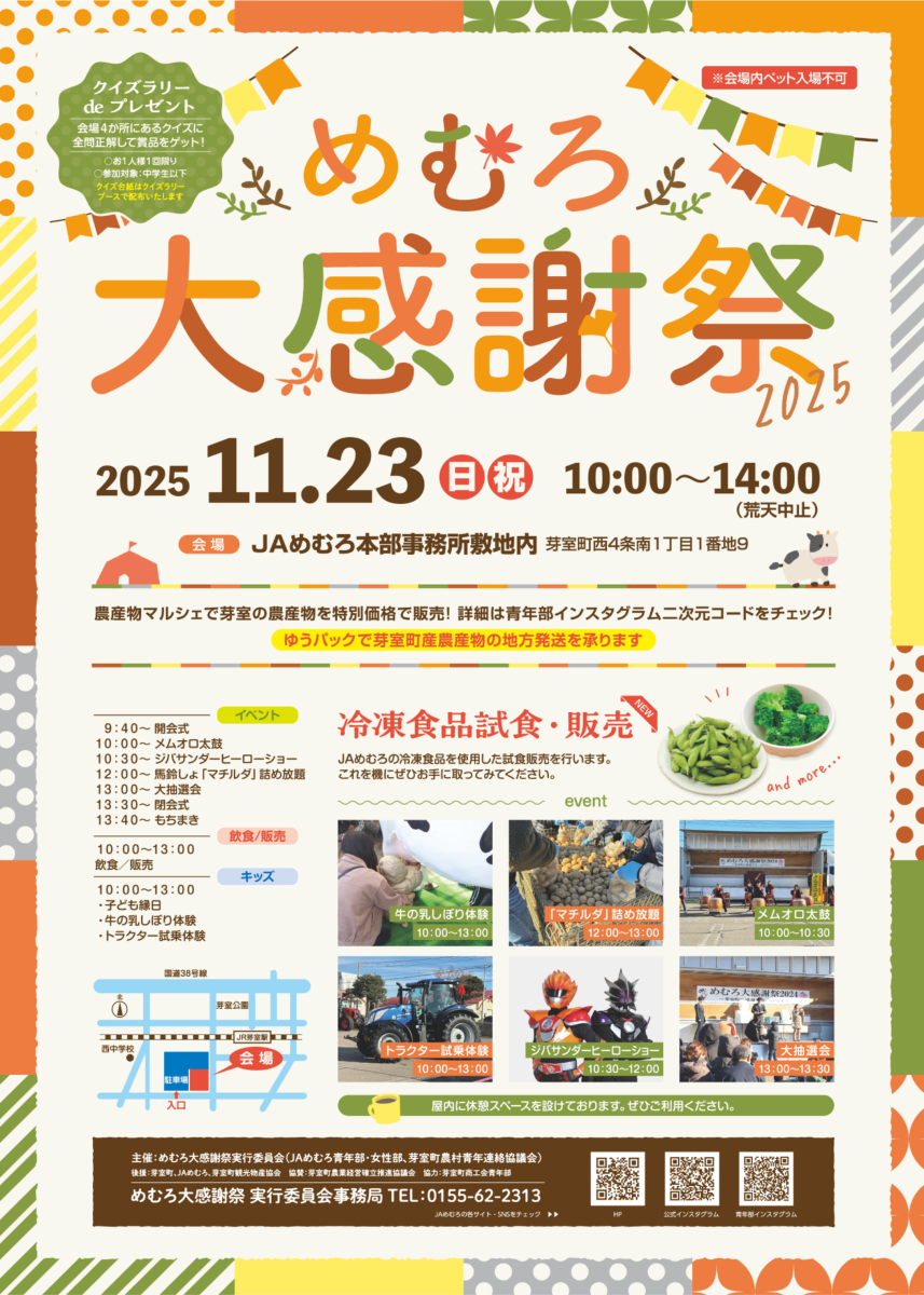 問い合わせ先 めむろ大感謝祭実行委員会事務局(JAめむろ営農部営農情報課)