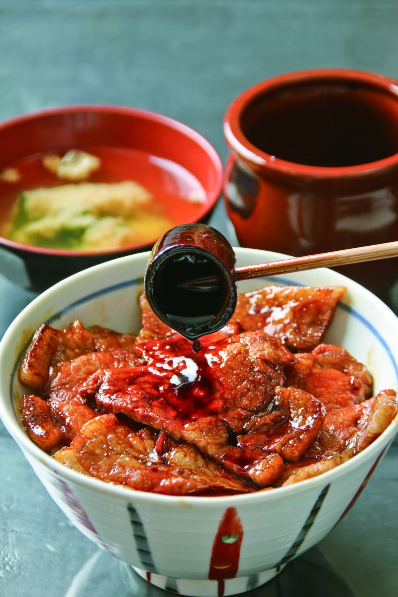 味噌汁と漬物と一緒に、タレも別に添えていますので、お好みの味にして召し上り下さい。