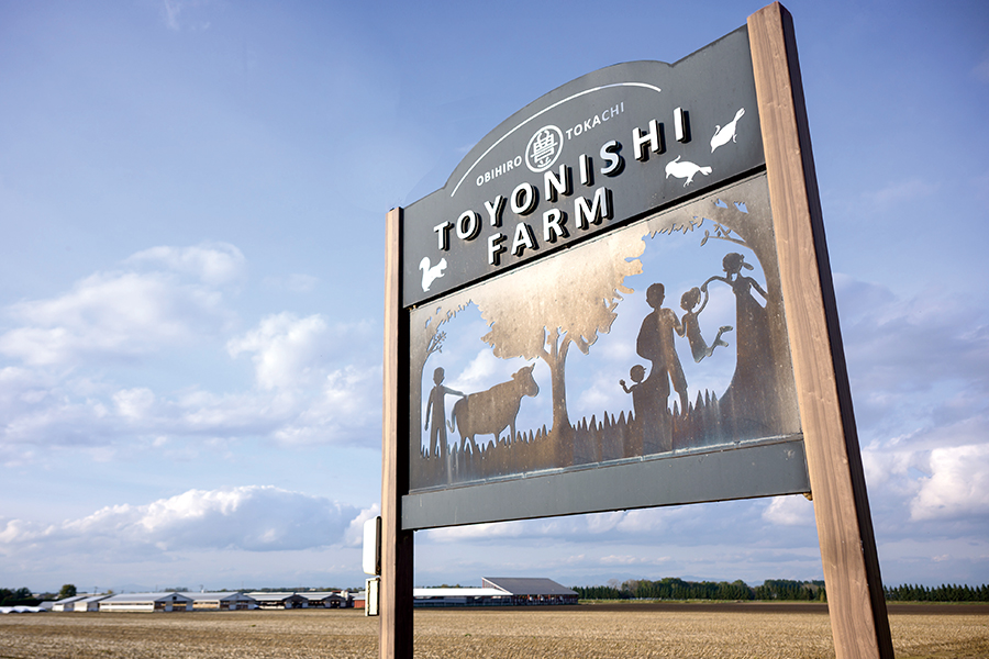 田園地帯が広がる帯広市豊西町にあるトヨニシファーム。明治44年以来、4代に渡り農業を経営しています。昭和61年に30頭からはじめた肉牛生産も現在は5000頭もの規模に。「十勝で育った美味しいお肉を通し、たくさんの“うれしい”を生み出し、人々の人生を豊かにしたい」という想いのもと、良い土ときれいな水、新鮮な空気が揃うこの地で、快適な環境づくりや独自の配合飼料にこだわりながら健康で肉質の良い牛づくりに力を注いでいます。